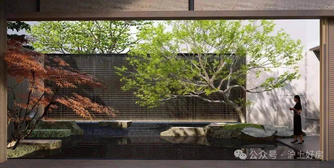 一进院:社区门口的6米宽瀑布景墙+落石+大乔组合,每个家庭的个性化需求都能获得充实满脚。